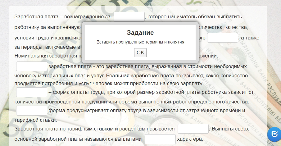 ПРОВЕРЬ ЗНАНИЯ ПО ТЕМЕ "ОПЛАТА ТРУДА"